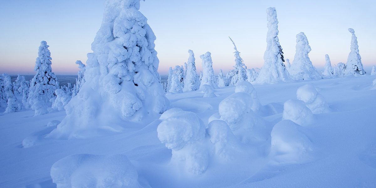 Vuoden pimeimpänä aikana valoa on Kuusamon korkeudella riittävästi. Selkeät pakkaspäivät ovat luontokuvaajalle tärkeitä. Noina päivinä aurinko näyttäytyy tovin verran horisontin yläpuolella ja usein tämä ”kaamosvalo” on uskomattoman hienoa. Upeimpia ovat hetket jolloin aurinko painuu horisontin taakse ja sininen hetki koittaa. Vuodenvaihteeseen osui muutama tällainen päivä ja tällä kertaa käytin tuon ajan talvimaisemien kuvaamiseen Posion Riisitunturilla.